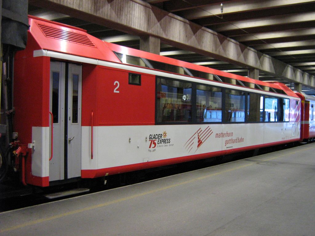 2nd-class Mk1 "Panorama" car (PS-4012) of MGB, seen in the consist of D 902 "Glacier-Express" (Zermatt ---> Chur).