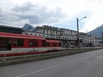 MGB - Switzerland The regional trains between Bris, Visp and Zermatt are normally operated by modern trainsets. ABDeh4/8 2022 and ABDeh4/10 2012 stand at Brig, waiting for their next run towards Zermatt. Brig, 29-07-2011 Digital photo by Marco van Uden |