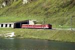 MGB regional trainset between Bugnei and Mompe Tujetsch heading for Disentis/Muster. 23. April 2004