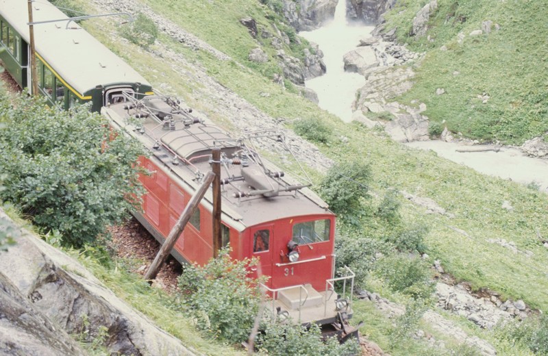 FO HGe 4/4 31 auf der Furka-Bergstrecke. 1977. Photo and scan by M.Koblischka |