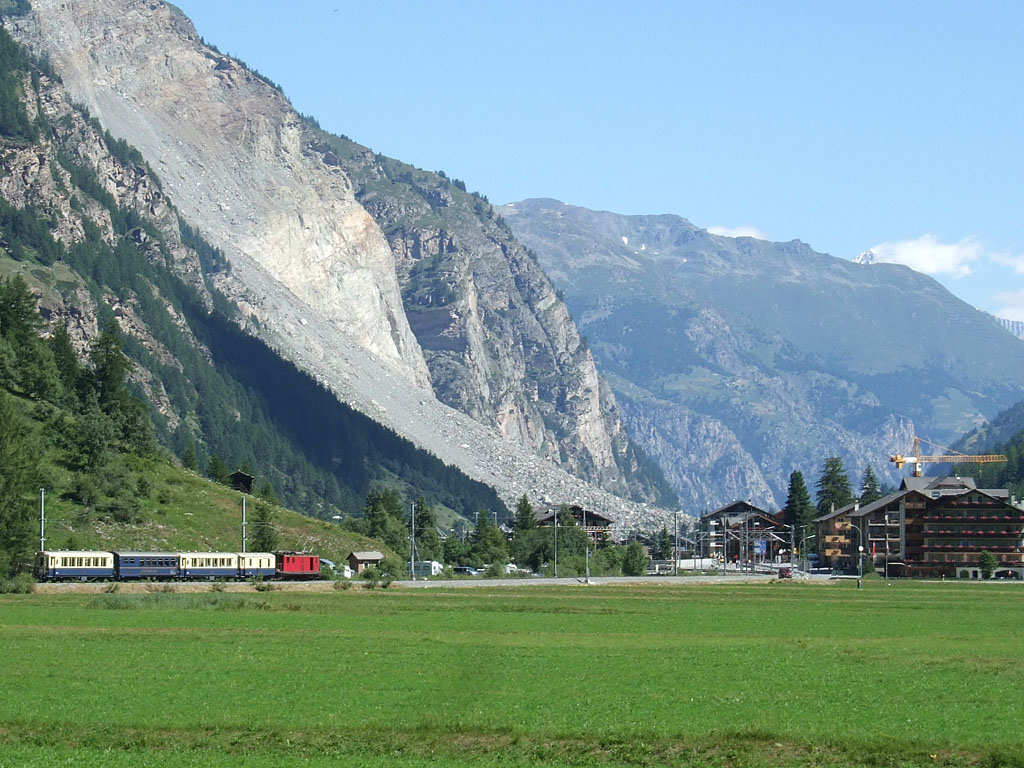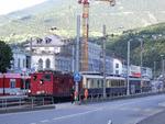 Alpine Classic Glacier Express Kurz nach dem Start in Zermatt nährt sich der Glacier Express am 19.07.2008 10:56 dem Bahnhof von Täsch. Ziel der Reise ist St. Moritz.