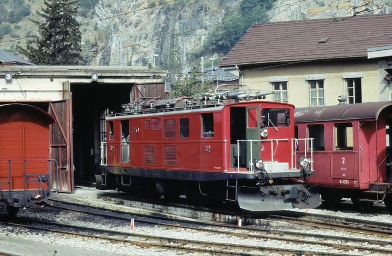 FO HGe 4/4 32 vor der Werkstatt in Brig. 1983. Photo and scan by M.Koblischka |