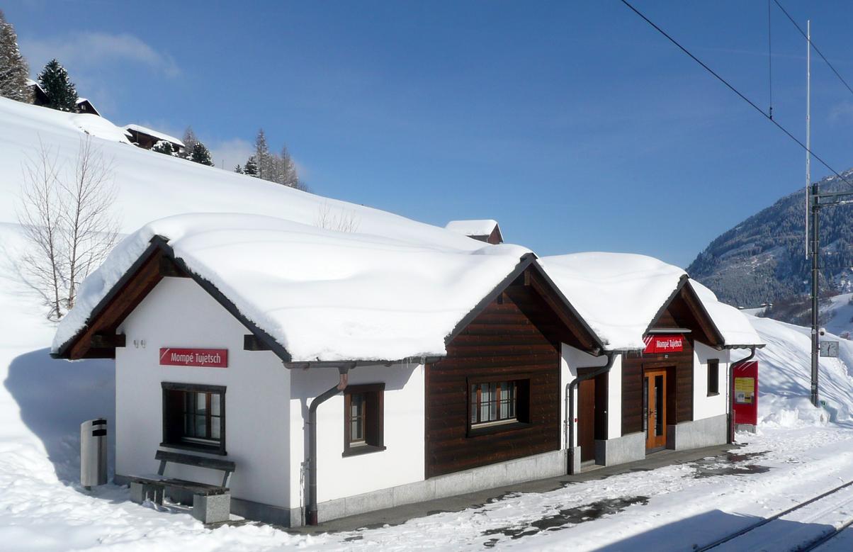 | mgb station Mompé Tujetsch on the Oberalp line, 2009-02-15. |