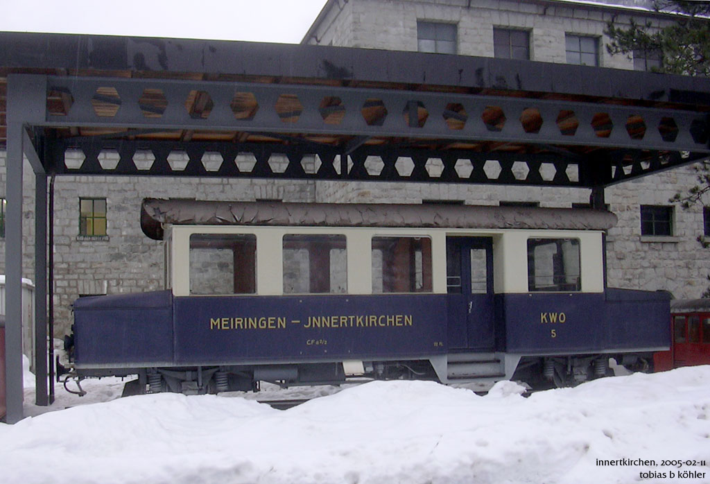 | MIB-KWO battery unit CFa 2/2 5. The sister unit No. 4 can be seen at the Verkehrshaus Luzern. Innertkirchen, 2005-02-11. |