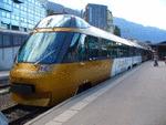 The Golden Panoramic Express, now incorporated into the Golden Pass Line, at Montreux, August 2003. The two ends of this train look totally different. August 2003. James Robinson |
