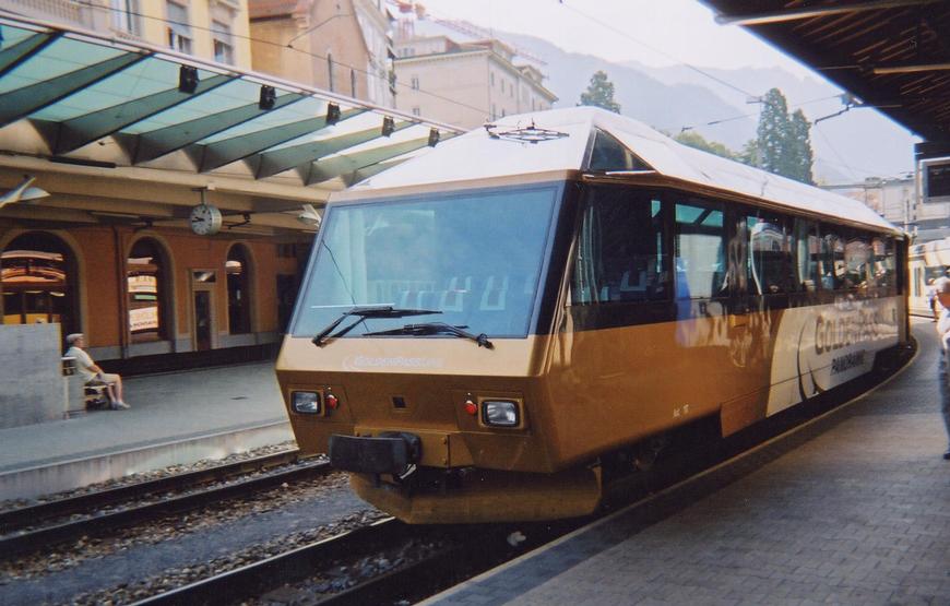 The other end of the Golden Panoramic Express in Montreux, August 2003. This car doesn’t have the sleeker appearance like the other observation car – an older carriage perhaps? James Robinson |
