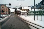 22 February 2002, Montbovon, Switzerland While I am on a train to Montreux these rails in the street are heading towards Bulle and Palézieux.