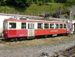 Transports Montreux-Vevey-Rivièra (MVR-CEV) - Switzerland The three motor cars of the Chemins de fer Électriques Veveysans that have not been modernised, are now only used for spare duties. BDeh2/4 nr. 74 plus a driving trailer are seen stabled at Blonay. Blonay, 06-08-2010 Digital photo by Marco van Uden |