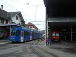 Regionalverkehr Bern-Solothurn - Switzerland RBS tram Be 4/8 83 at the end point in Worb. The trams are bi-directional, but an end loop is available behind the tram. Worb, 05-03-2010 Digital photo by Marco van Uden |