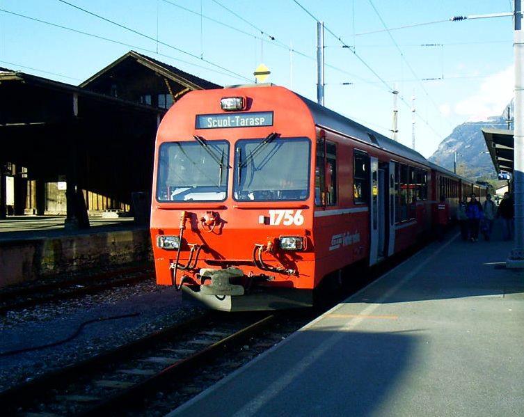 RhB BDt 1756 has just arrived at Landquart from Scuol-Tarasp.