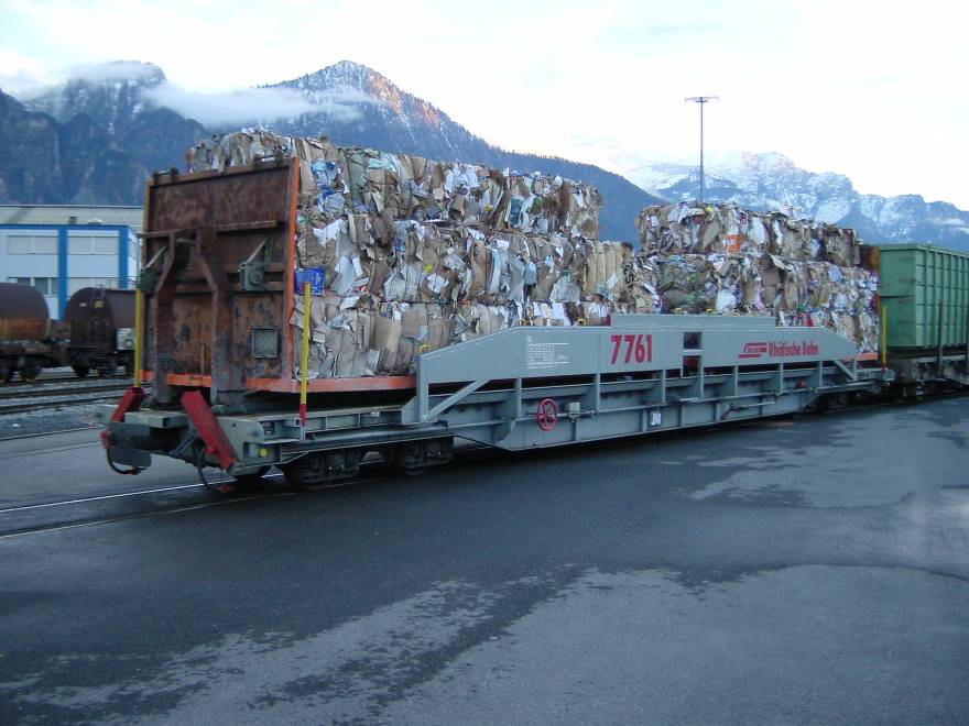 RhB Güterwagen Sl 7761 beladen mit Altpapier, Landquart, 2. Dezember 2001; Digital photo by Daniel Stieger (danielstieger@hotmail.com) |