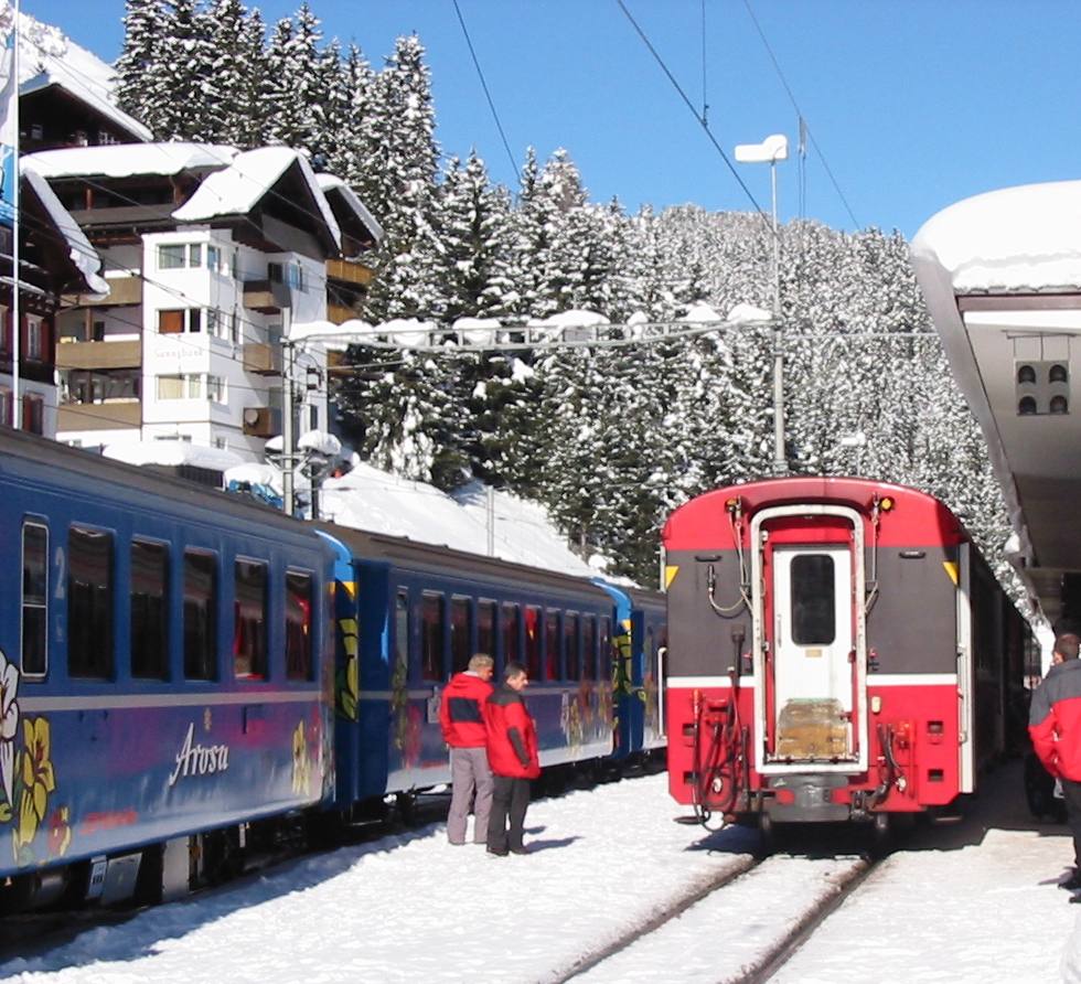 Rhätische Bahn/Berninabahn, Switzerland Between Scuol and Samedan. Photo by Stephan R. Schilling August 2004, cervin@matterhorn.strs.de |