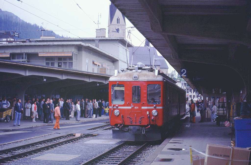 RhB ABe4/4 501 in Davos Platz. Juni 1991. Photo and scan by M.Koblischka |