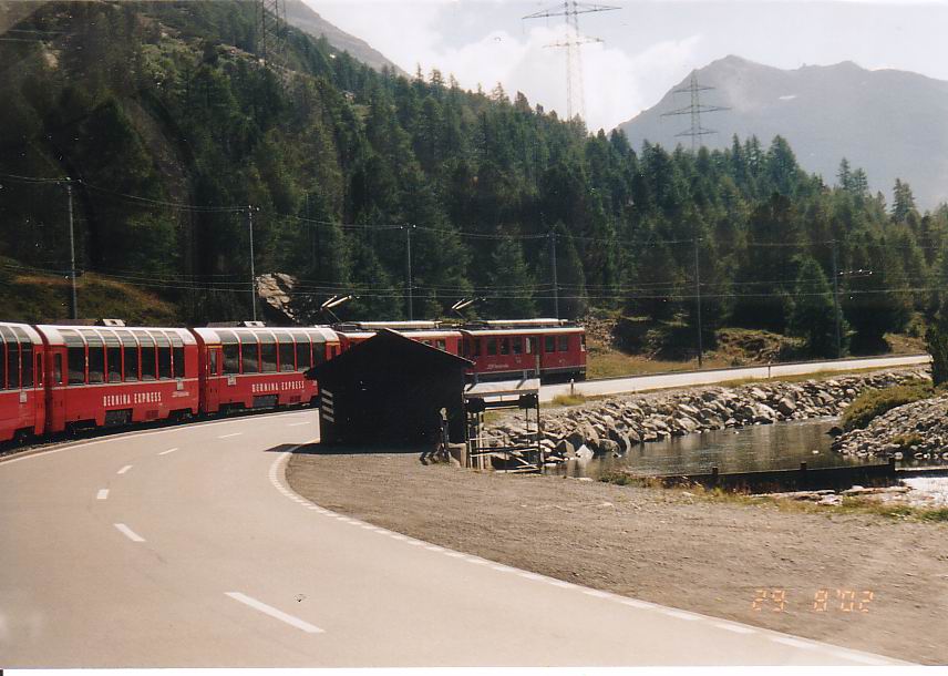 Heavy regional train from Chur approach Ospizio Bernina halt. Sept 2003 Photo and scan Marco Lambruschi marcolambruschi@libero.it |