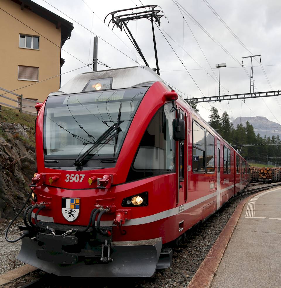 | RhB ABe 8/12 3507 "Benedetg Fontana", Pontresina, 2019-10-04. |