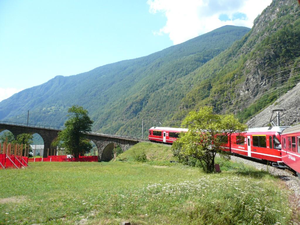 On world famous Brusio spiral viaduct, way to St.Moritz.
