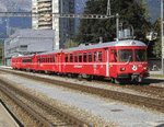 | RhB car ABDt 1712, built 1971 by FFA/SIG, in a composition with two middle cars and a Be 4/4, local train Chur - Thusis in Reichenau-Tamins. 2009-02-15. |