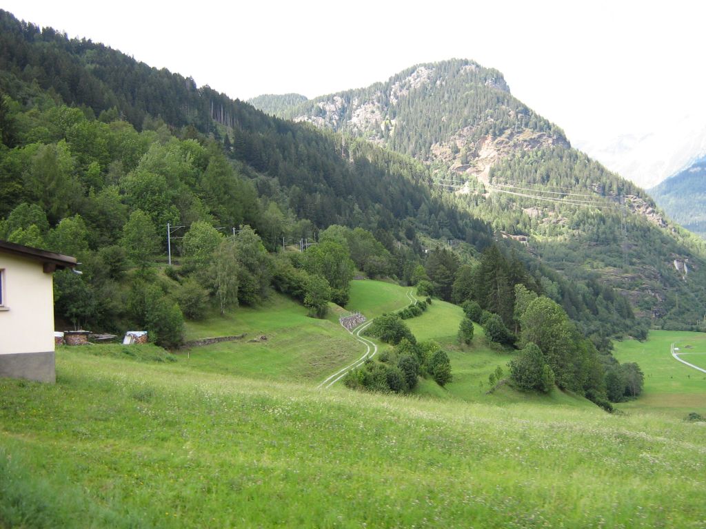 Pic made while leaving Val Poschiavo, looking South (Poschiavo and Tirano). RE 1660 (Tirano ---> St Moritz). 18th August 2007.