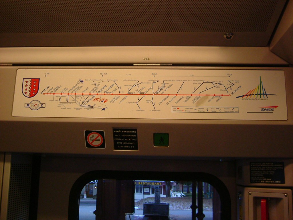11 Dezember 2003, Châtelard-Frontière, Schweiz Die Streckenkarte ist richtig orientiert, in der Tat liegt Martigny zu linker Hand.
