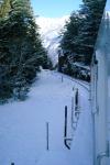 16 December 2003, between Châtelard and Martigny, Switzerland Approaching the top end of the rack rail section between Salvan and Vernayaz. The "C" in the distance probably stands for "crémaillère". This photo has been salvaged by my local photo dealer from a SmartMedia memory card that almost entirely "had lost its memory" overnight. On the way to the CD writer on his printing station the photos have been optimised in contrast and sharpness, they also lack the original time-of-photo information and chronological sequence. As a consequence I cannot pin down the precise location for some of the photos.