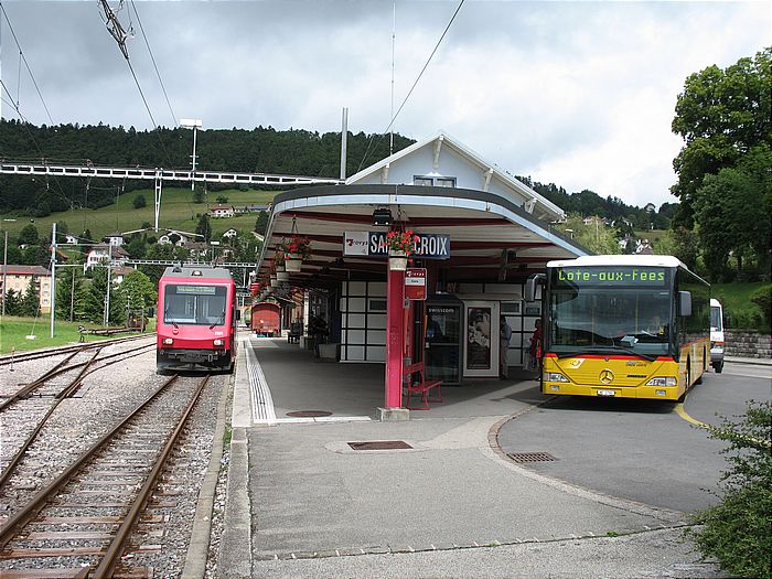 TRAVYS narrow gauge train to Yverdon-les-Bains at Sainte-Croix. 23.6.2007 Martin P. |