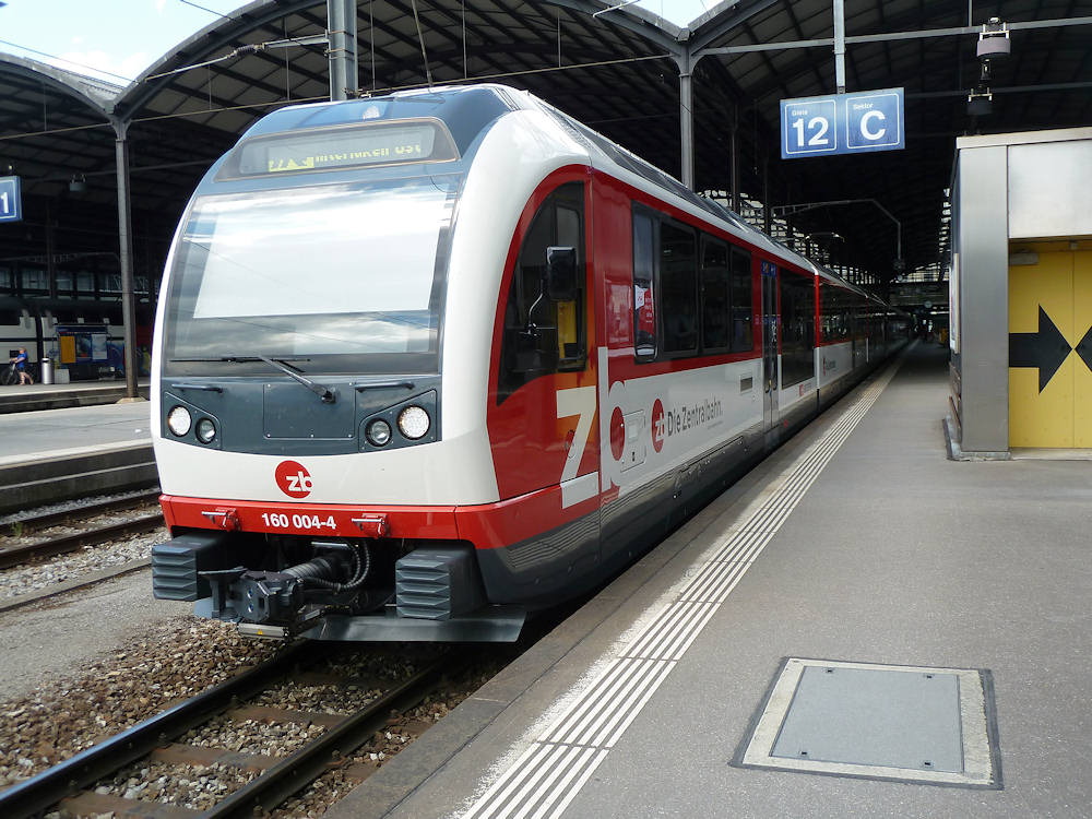 ZB - Switzerland Brand new 3-car electric narrow gauge rack-and-adhesion trainset ABeh 160 004 is seen at the head of a long IR train from Luzern to Interlaken over the Brünig pass. Luzern, 11-08-2013 Digital photo by Marco van Uden |