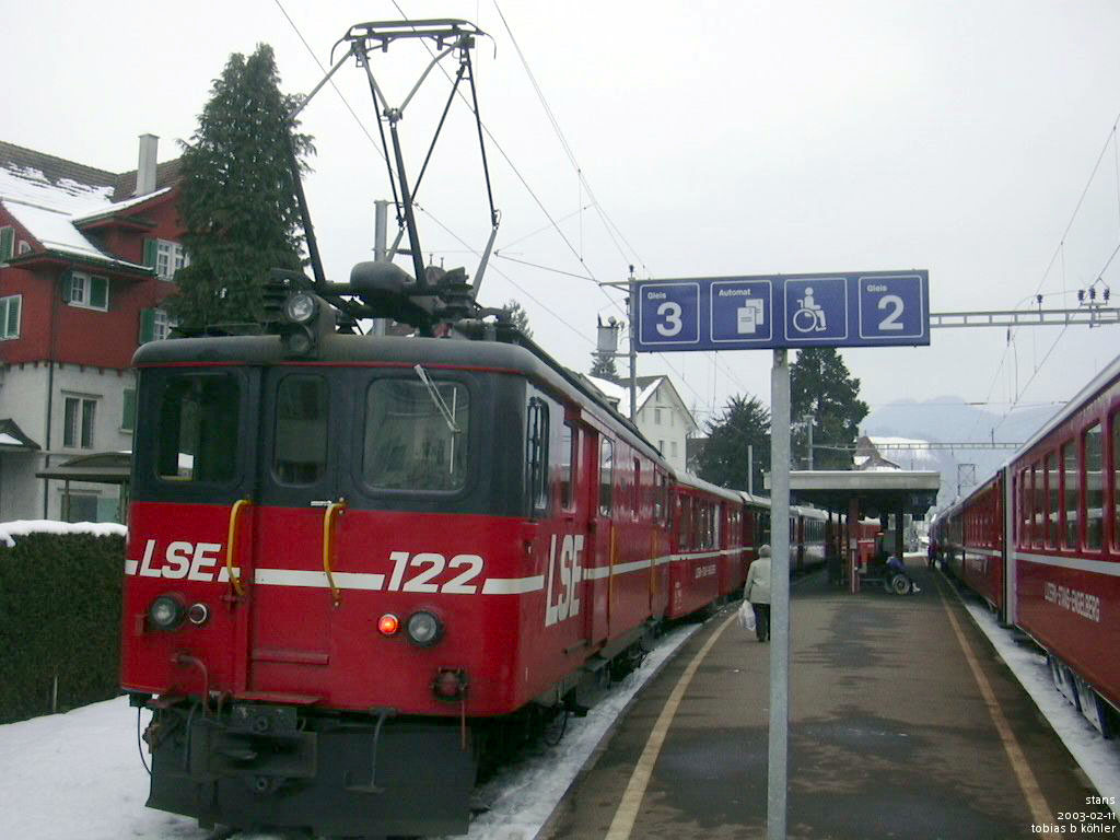 LSE (Luzern-Stans-Engelberg) commuter train in Stans, with the power