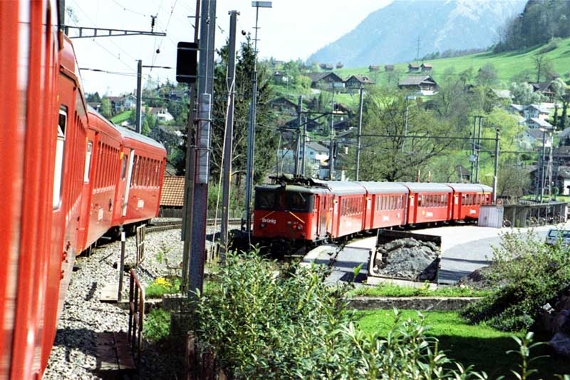 SBB-Bruenig-Bahn in Alpnachstad. 08 Jun 2000. Photo by Juergen Goetzke (JGoetzke@gmx.de) |
