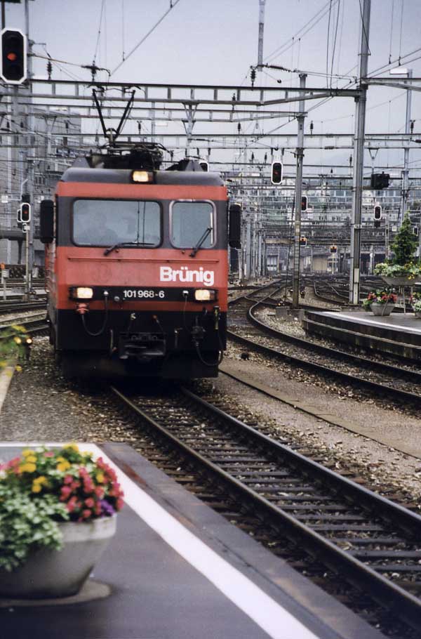 Einfahrt in den Bahnhof Luzern der Brünigbahn. 7. Mai 1999 Photo: A. Senn; http://www.senn.ch |
