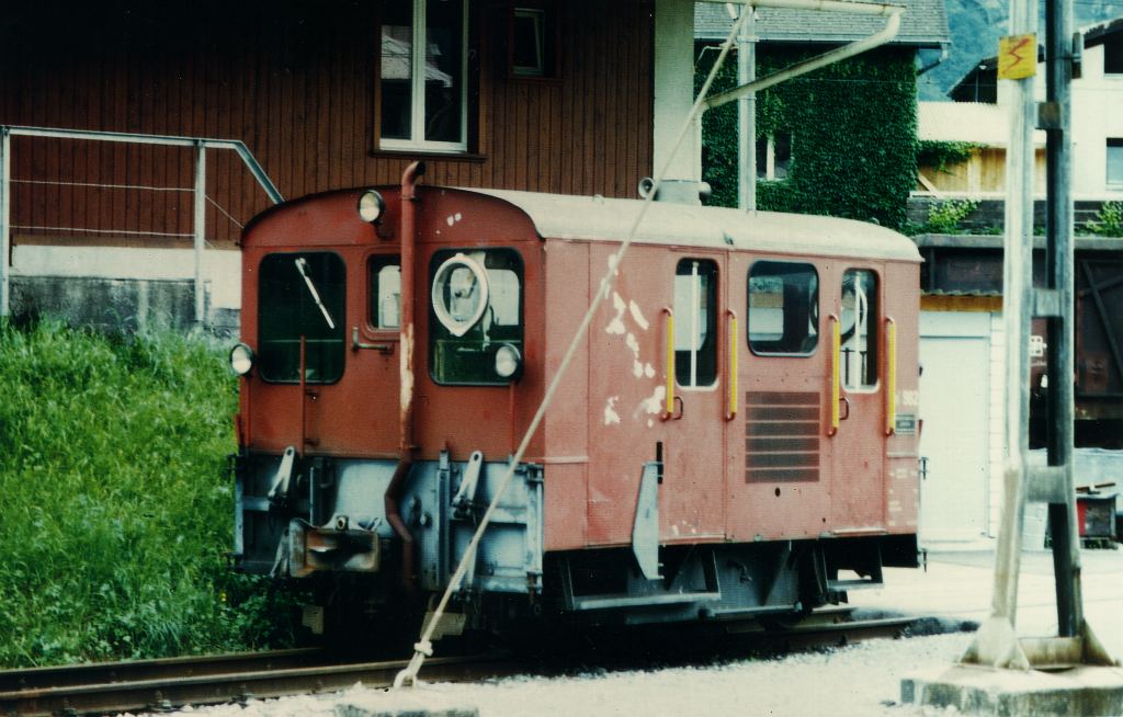 Ein Tmh 986 im Bahnhof Lungern. April 2000 Photo: A. Senn; http://www.senn.ch |