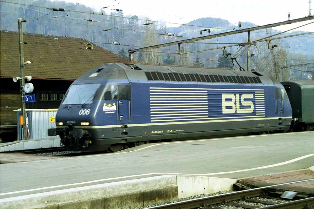 460 006-5 BLS class 460 locomotive photographed at Spiez station on 13/05/04