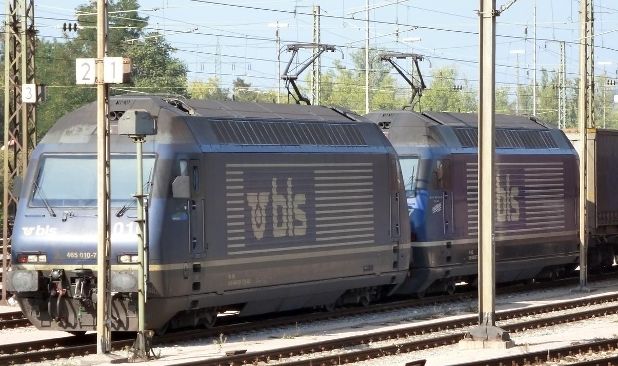 Die BLS 465 012 in Doppeltraktion am Bahnhof Weil am Rhein.
