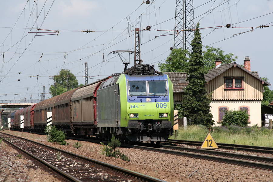Re 485 009-5 BLS Cargo mit Gz bei Oftersheim(31.5.08)
