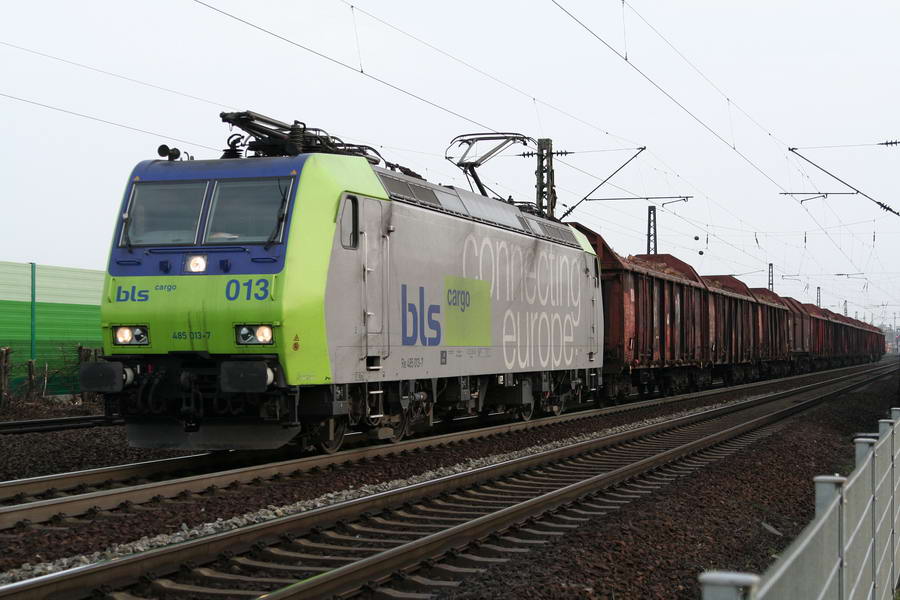 Re 485 013-7 BLS Cargo mit Gz bei Oftersheim(22.2.08)