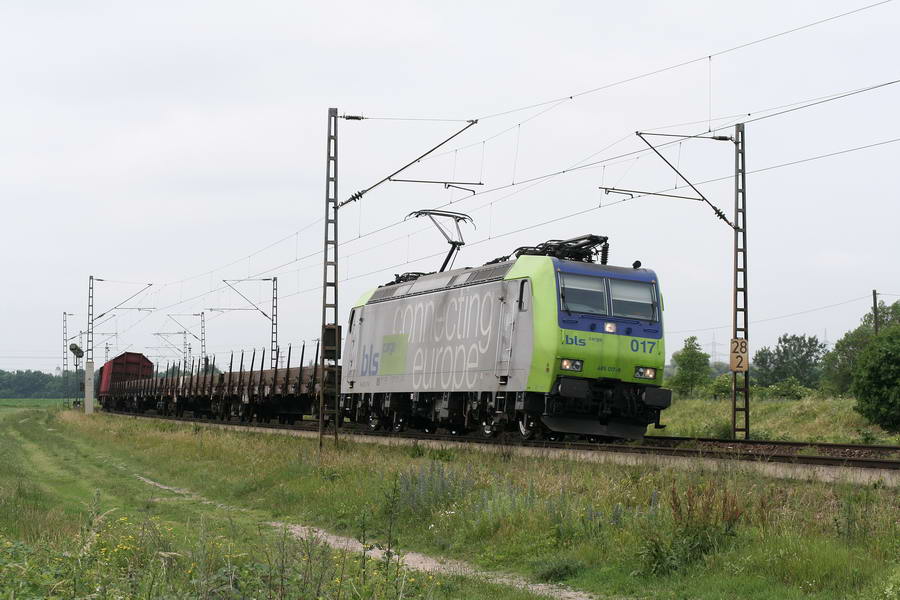Re 485 017-8 BLS Cargo mit Gz bei Waghäusel(7.6.08)