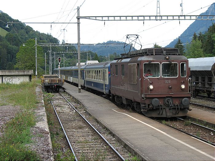 BLS - Switzerland The old BLS locomotive Re425 167 - normally allocated to BLS Cargo - is ready to haul the Golden Pass Panoramic train from Interlaken Ost to Zweisimmen. Interlaken Ost, 23-11-2005