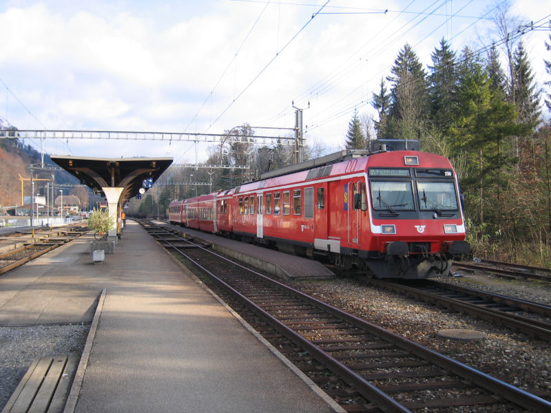 RM - Switzerland The RM version of the common "EAV-Triebwagen II" is called RBDe566 230-242. They nowadays mainly operate with matching driving trailers plus new, partly low-floor, intermediate trailers as 4-car trainsets. Madiswil, 22-11-2005