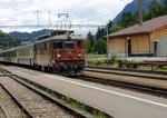 BLS Ae4/4 258 pulling a train out of Interlacken Ost. In the left of