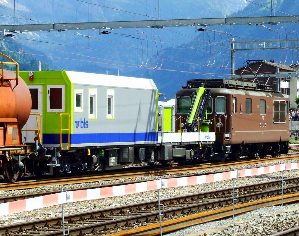 Baudienstwagen der BLS südlich des Bahnhofes Kandersteg.