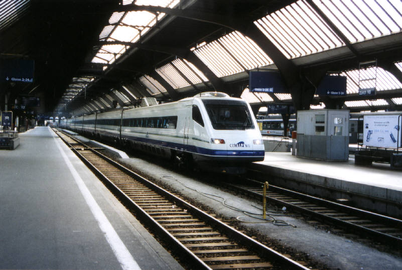Cisalpino Pendolino vor dem Abfahrt nach Brig und Milano, Zürich HB, July 1998, Photo by David Singer, davidsinger99@yahoo.com |