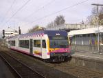 MThB - Switzerland/Germany Mittelthurgaubahn type GTW2/6 diesel trainset Bm 596 672 in the station of Radolfzell, where connections to other MThB trains to Engen(D) and Kostanz-Weinfelden(CH) are possible. Radolfzell, 27/02/2001
