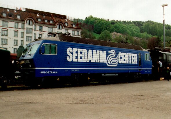 SOB(Suedostbahn) Re 4/4 IV 446 446-7 (ex SBB) at the 150 year fair in St.Gallen, 10.Mai 1997.