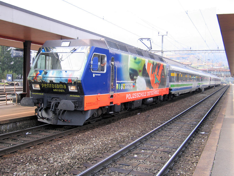 SOB locomotive Re456 092 in Police School Eastern Switzerland livery hauled one of
