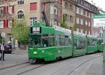 Basel - Straßenbahn - 665 Niederflur-Mittelteil des Triebwagens 665 auf Linie 2 vor dem Badischen Bahnhof am 06. August 2007.