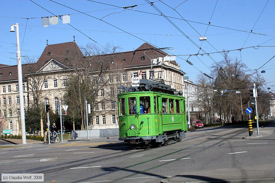 Basel - Straßenbahn - 126 Triebwagen 126 als Extrawagen beim Bahnhof Basel SBB, aufgenommen am 24. Februar 2008.