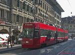 Bern, Marktgasse 27-12-2006. Articulated tram type Be 4/8 of the SVB (Stadtlische Verkehr Bern) on Route 5 going towards Ostring.