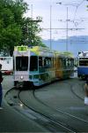 Tram 2051 als Nr. 8 beim Bellevue. Dieses Tram macht Werbung für ein Suchtpräventationsprogramm. Tram 2021 as No. 8 by the station Bellevue. This tram is making advertising for a special programm of prevention. August 1999 Photo: A. Senn; http://www.senn.ch |