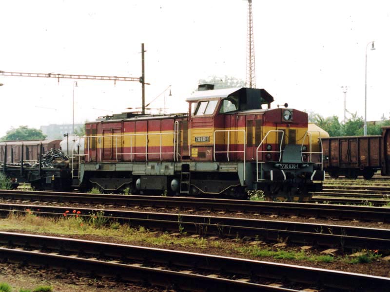 Unit 730 630-1 is standing in station Pardubice hl.n. Taken on 5/8/2001