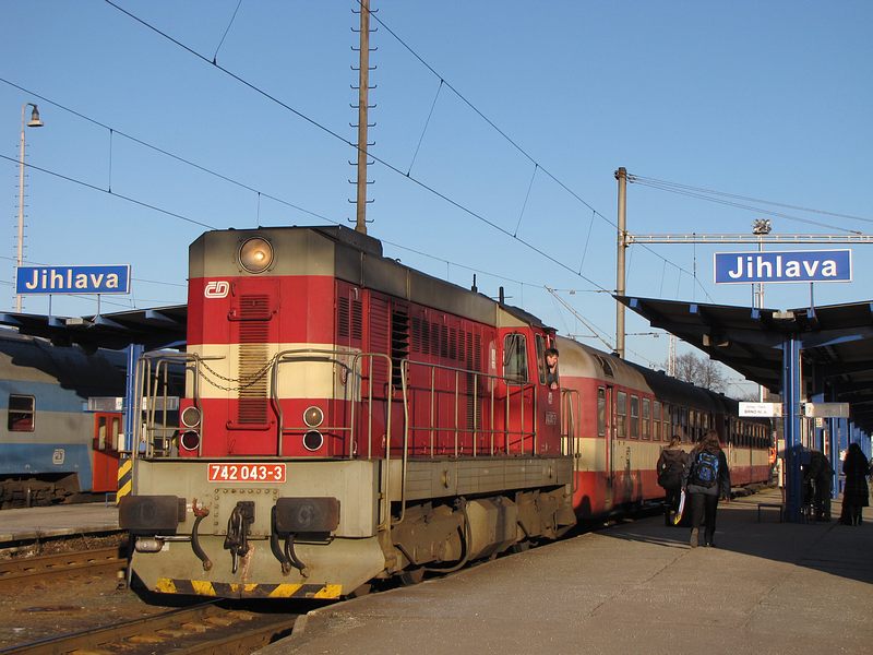 CD 742 043-3 with fast train from Pardubice in Jihlava on 29.12.2009
