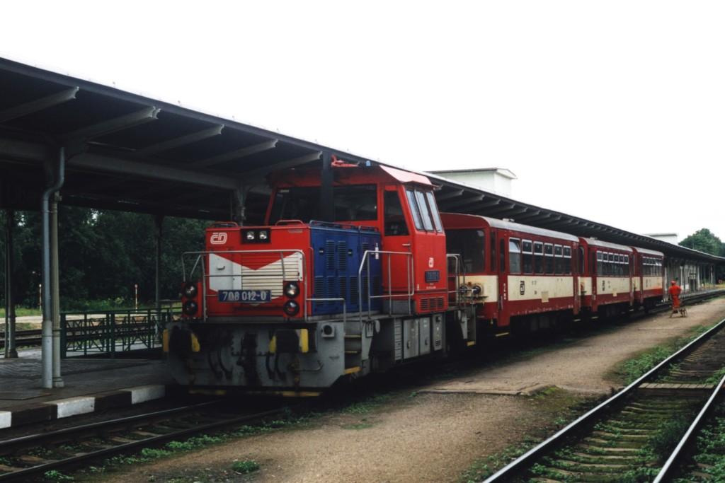 Locomotive 708 012-0 with units 810 652-8, 010 211-1 and 010 123-8 at the railway station of Liberec on 20-7-2005. Photo and scan by Date Jan de Vries (email: datedevries@hotmail.com). |